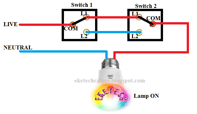 If you need to know how to wire a two way switch then this is the place to start. To construct this setup we need 2 two way switches here common terminal on one switch is connected with phase line and another switch common terminal connected to the lamp load always prefer switch connection in the phase line.