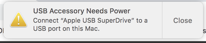 As i recall the apple super drive draws more power than allowed by the usb spec but apple provided an exception for it in the software driving mac usb ports in legacy pre usb c macs. Symptoms a message says that the device needs more power the operation cant be completed or usb devices are disabled until you unplug the device using too much power. Make sure that the aluminum enclosure of the superdrive is facing up. Answered by susan p from san jose. Drives cameras keyboards hubs and other devices that plug into your usb a usb c or thunderbolt 3 usb c port can request a limited amount of power from your mac. I use some without a problem but have a power adapter available just in case.