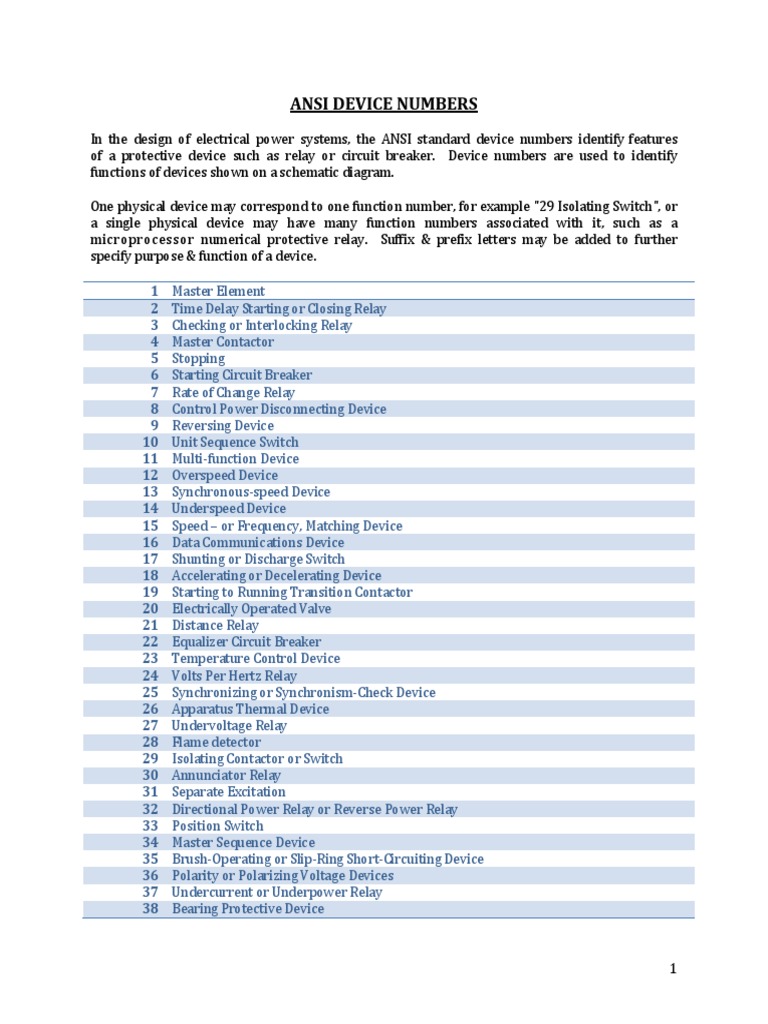 Selection from iec 617 ieee c372 1991 and ieee c372 1979 1mrk 590 006 ben page 6 ieee device numbers and functionsand functions contd contd 15 speed or frequency matching device functions to match and hold the speed or the frequency of a machine or of a system equal to or approximately equal to that of another machine source or system. Normally close nc the other end of the load is either connected to no or nc.